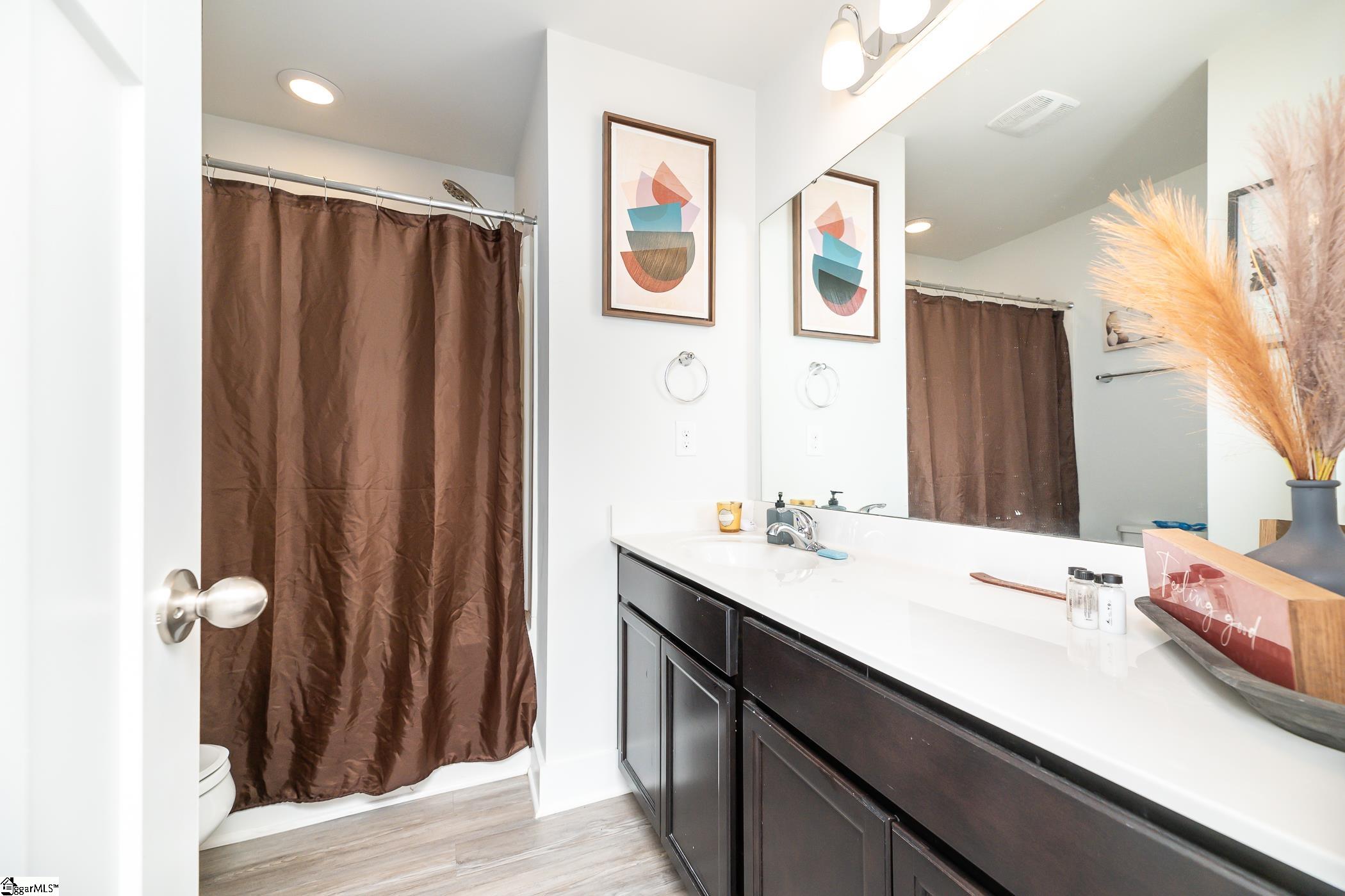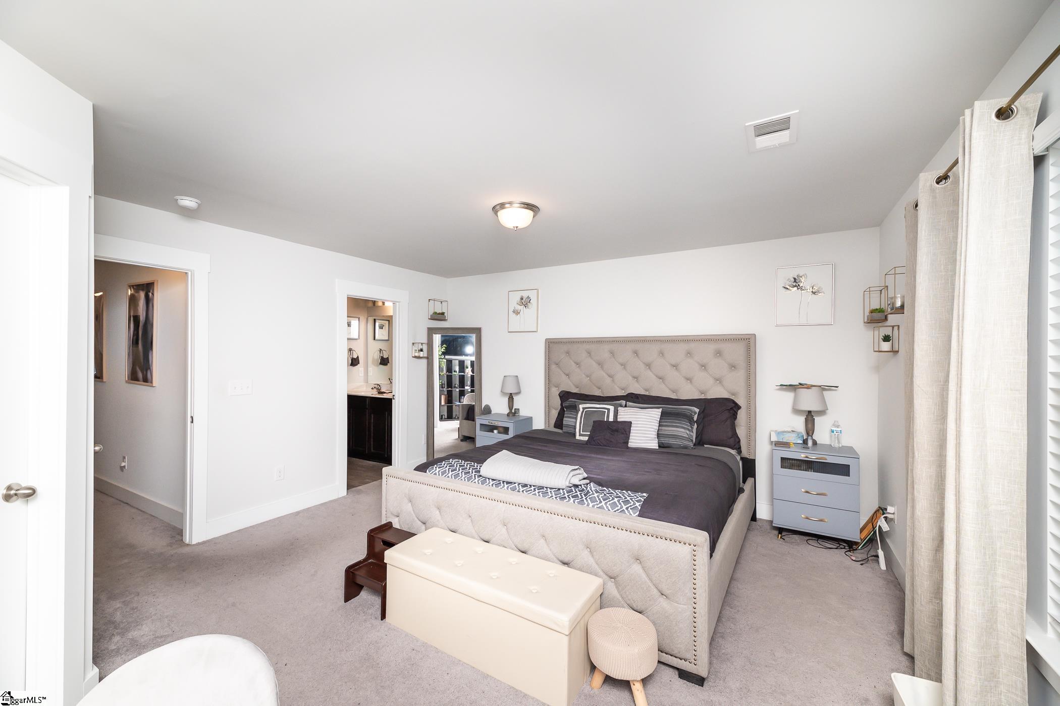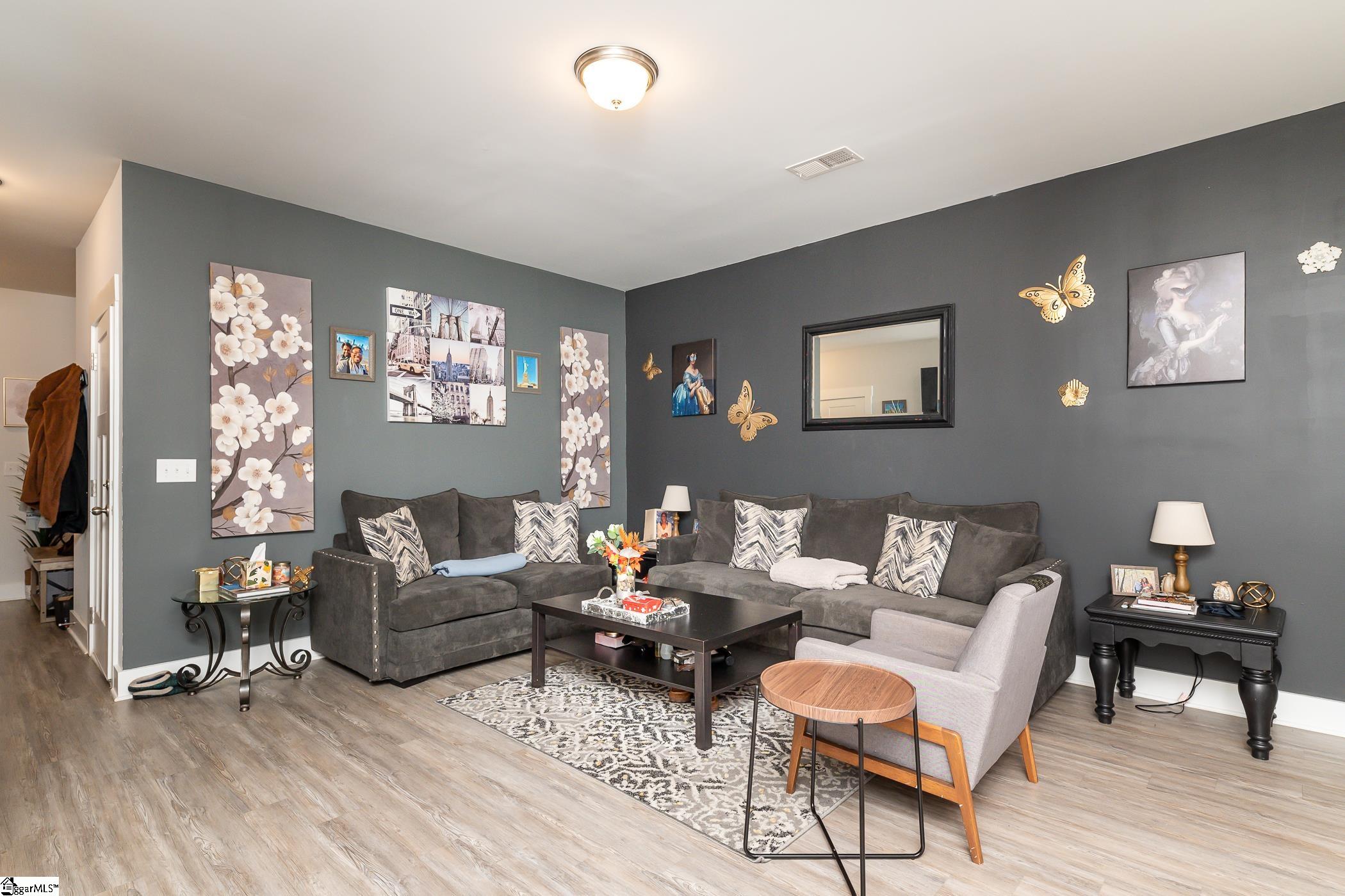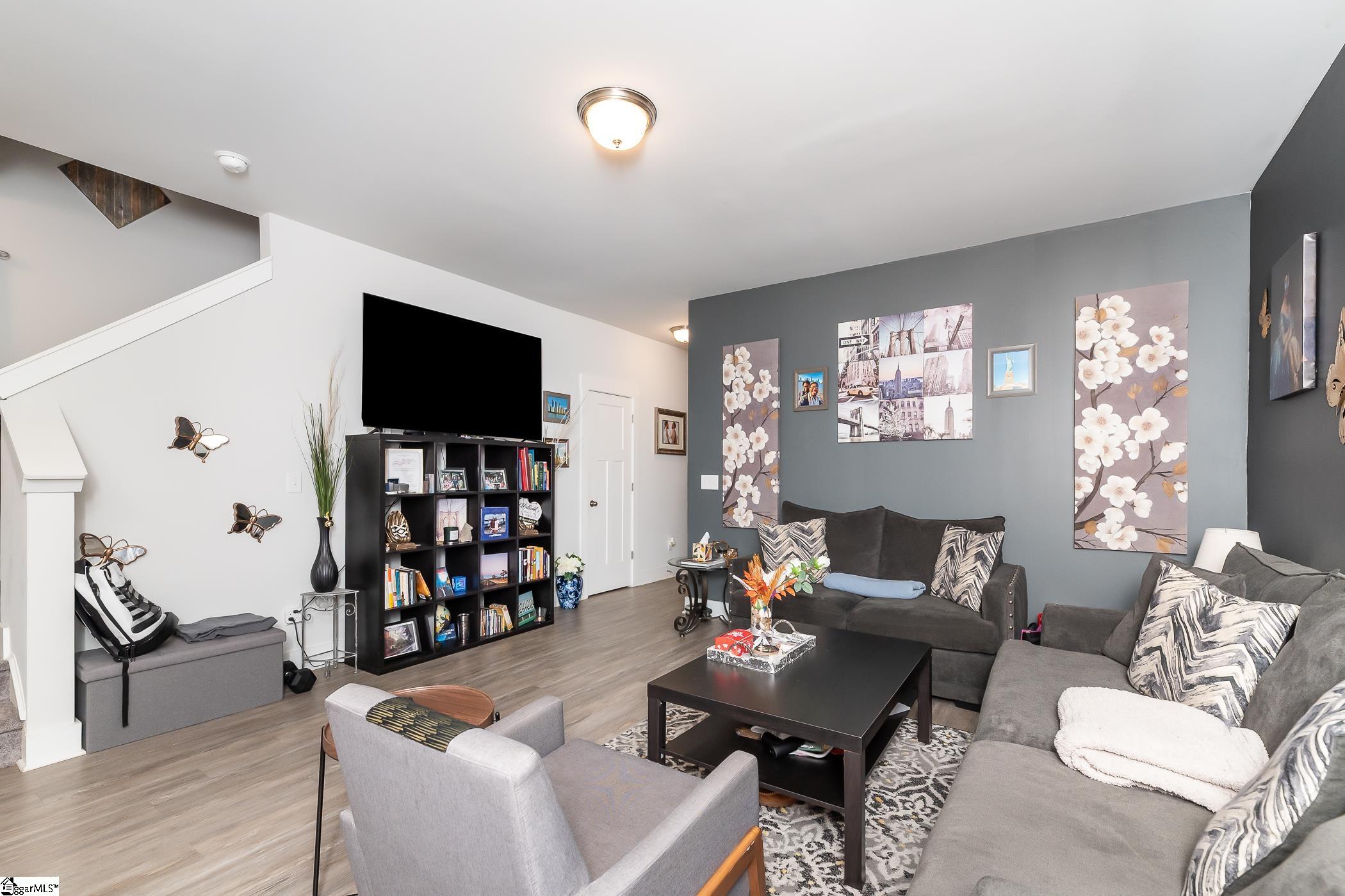This inviting end-unit townhome is nestled on a quiet street in Lakeview Chase Townes. As you enter, you're greeted by luxury vinyl plank floors, smooth tall ceilings, and a spacious open floor plan with abundant natural light. The open kitchen boasts recessed lighting, stainless steel appliances (including a gas range), granite countertops, a large island with a breakfast bar, ample cabinet and counter space, a pantry for additional storage space, and an adjacent dining area. The spacious master bedroom is separate from the other bedrooms and features a walk-in closet and a private en suite bathroom with a dual vanity, a separate water closet, and a large walk-in shower. The laundry room is conveniently situated upstairs with the bedrooms. The patio, with adjacent storage closet, and the backyard area will be perfect for grilling out and entertaining. Located just minutes from shopping, dining, and the interstate. It's also just a short drive to Downtown Greenville. Come see your new home, today!