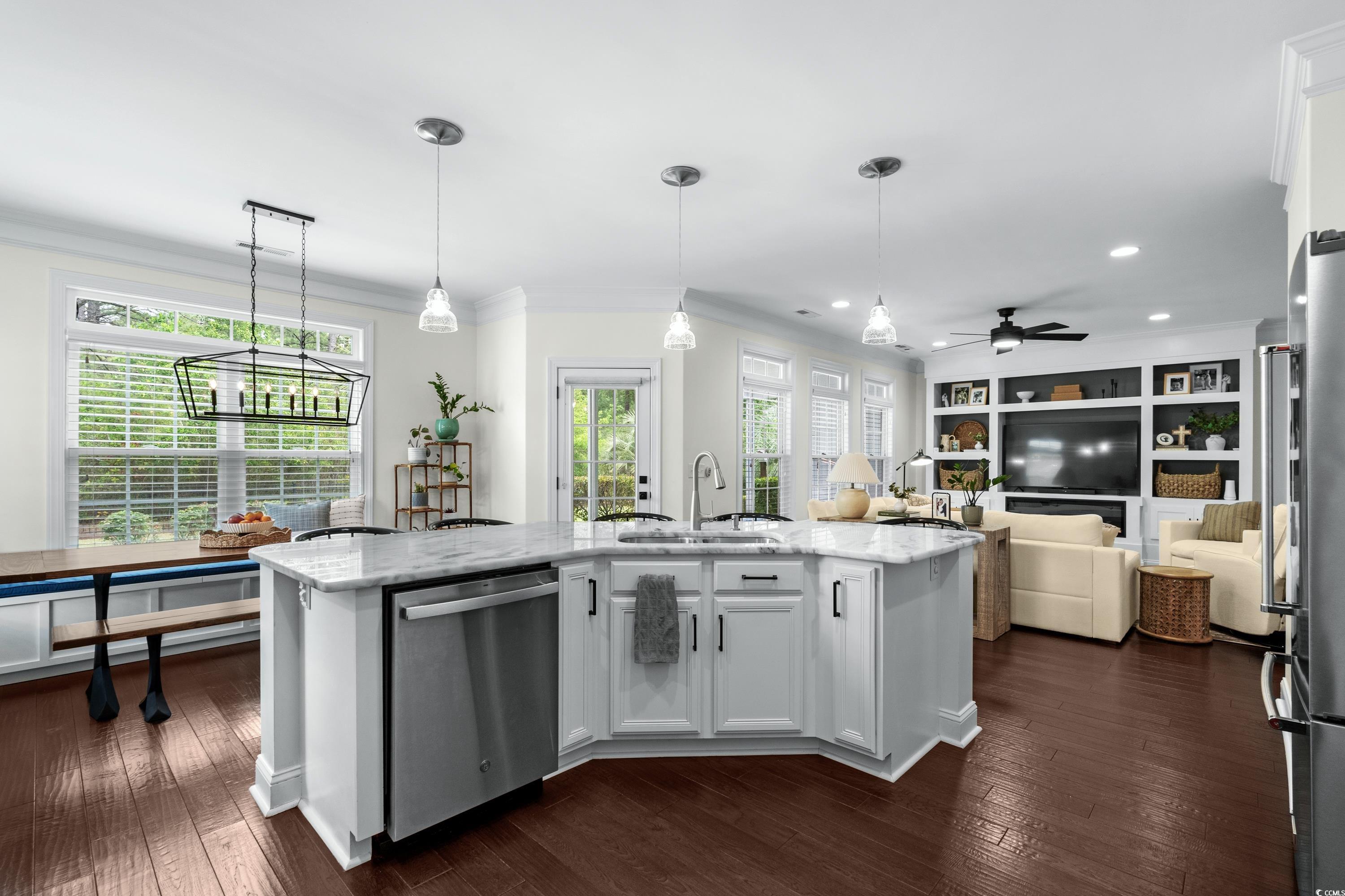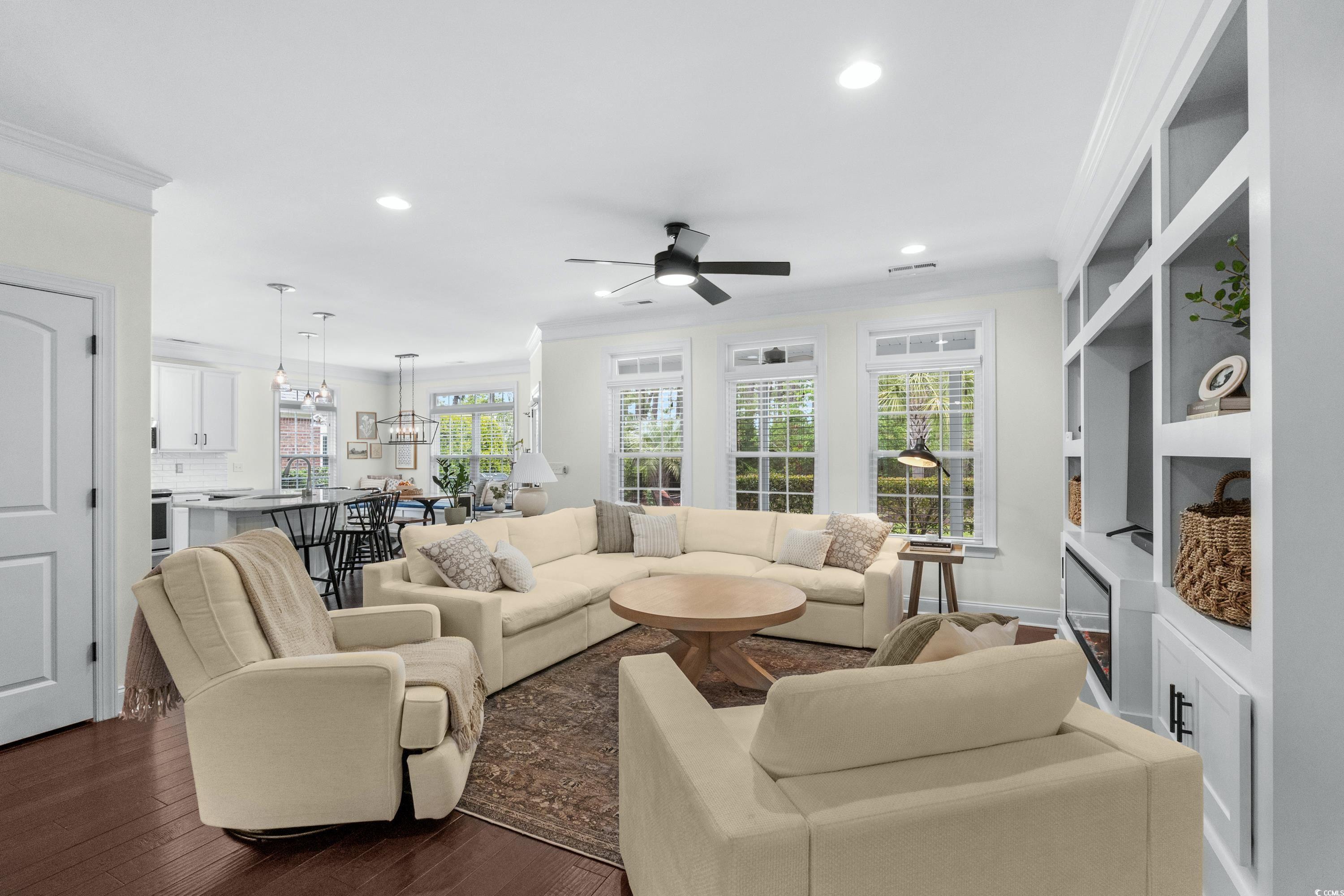 ***OPEN HOUSE: SATURDAY 11/1: NOON-3P*** Luxury meets livability in this beautifully updated 5-bedroom, 3-bath home in Plantation Lakes! The spa-inspired primary ensuite steals the show with a zero-entry tiled shower, soaking tub, dual vanities, and a tray-ceiling primary suite—your private retreat after a long day. An open-concept layout highlights rich hardwood floors, built-in cabinetry, and a modern electric fireplace. The chef’s kitchen impresses with a massive wainscoted island, quartzite countertops, stainless steel appliances, designer tile backsplash, and a walk-in pantry. Enjoy a bright breakfast nook with built-in bench and storage, a screened-in porch, and a fully fenced backyard with mature landscaping, fire pit, and entertaining patio. Upstairs features a versatile loft and clever play nook under the stairs. Additional upgrades include a tinted glass front door, epoxy-coated garage floor, and a tiled laundry room with built-ins. Residents enjoy resort-style amenities—multiple pools, clubhouse, fitness center, playground, pickleball, tennis, basketball, volleyball, boat ramp, and day docks. Move-in ready, modern, and meticulously maintained—this home truly has it all!
