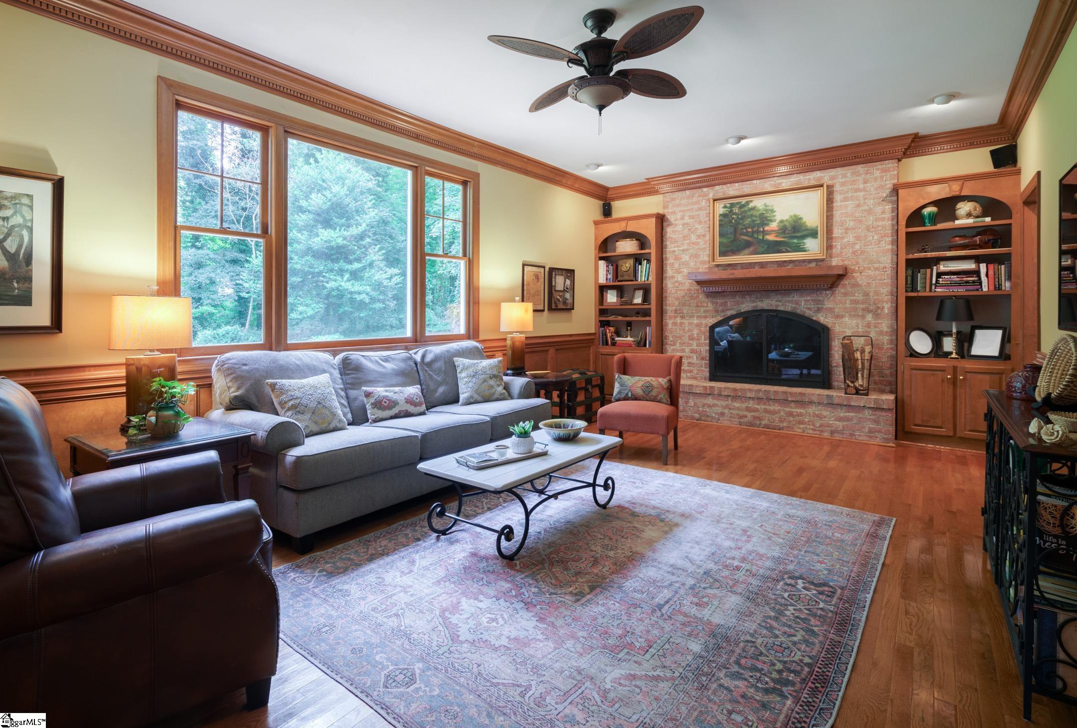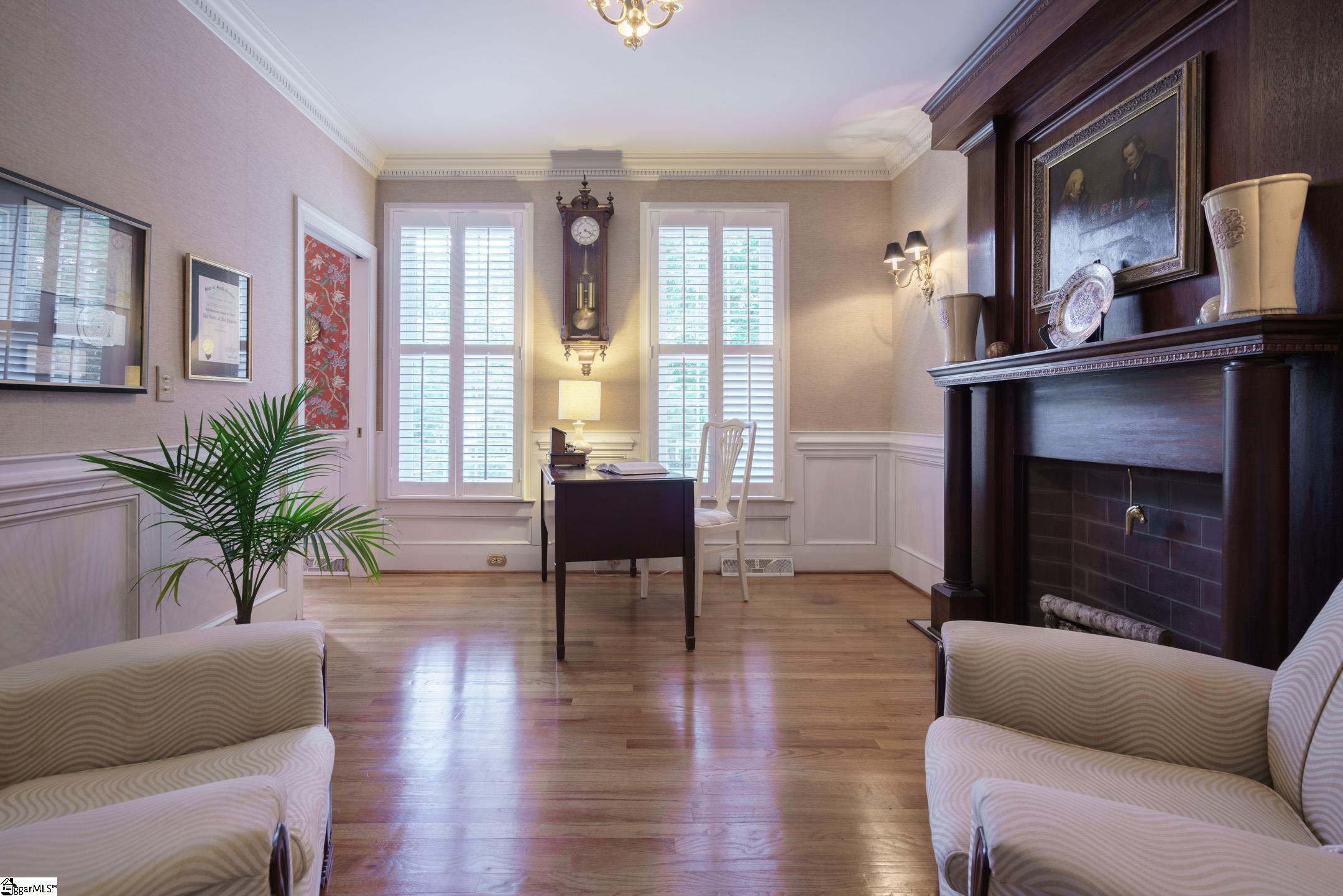 OPEN HOUSE SUNDAY August 2t5 from 2-4pm. WELCOME HOME to 4 Claiborne Way! This one-owner, all-brick custom home is situated on a 1.2 acre private, cul-de-sac lot in the established and highly regarded community of Asheton off Hwy 14 in Simpsonville. The home boasts an endless array of unique details from the exterior shutters and flower boxes to the interior trim work and wood burning fireplace. You will not only enjoy a formal dining room with custom niches, columns and hardwood floors but also a charming study/home office/den with wainscoting, a gorgeous faux fireplace and French doors leading to the sprawling Great Room. This space showcases a center wood burning fireplace with brick facing, custom bookshelves and several closets for storage and/or a future wet bar (current owners removed the sink). The kitchen features a mobile island, quartz countertops, a serving bar, double ovens, a gas cooktop and wait until you see the spacious pantry, mudroom and laundry room space. Wow! This home was way ahead of its time! In fact there is a pre-plumbed water line and electrical to install a beverage or coffee station if one desires. The hall bathroom/powder room is also nearby this area and the Family & Friends entrance on the side of the home leading to the long driveway. The breakfast area with ceramic tile and its own faux fireplace offers some of the best views of the rear grounds, not to mention nature through the large bay window. Just perch on the window seat and watch all of the birds, squirrels and rabbits visit! And if nature is indeed your cup of tea, then you will love the brick covered patio! The owners say they use it year-round as the trees give such coverage from the heat and elements. Upstairs you'll find two bedrooms sharing a well-appointed hall bathroom with a vanity with granite tops and a separate space for the tub/shower and toilet. The primary bedroom is also on the second floor and offers a sitting area, walk-in closet with custom shelving and an updated bathroom with a dedicated vanity area as well as a separate space for the soaking tub and cultured marble walk-in shower. There's a 4th bedroom upstairs with its own dedicated staircase. There's a huge walk-in closet in this room. And there is also walk-in attic storage access here too. This home truly has so many special qualities including the ultimate convenience to Hwy 14, Roper Mtn Rd, Woodruff Rd, the GSP International Airport and award winning schools including Oakview Elem, Beck Academy and JL Mann HS as well as Southside Christian School.