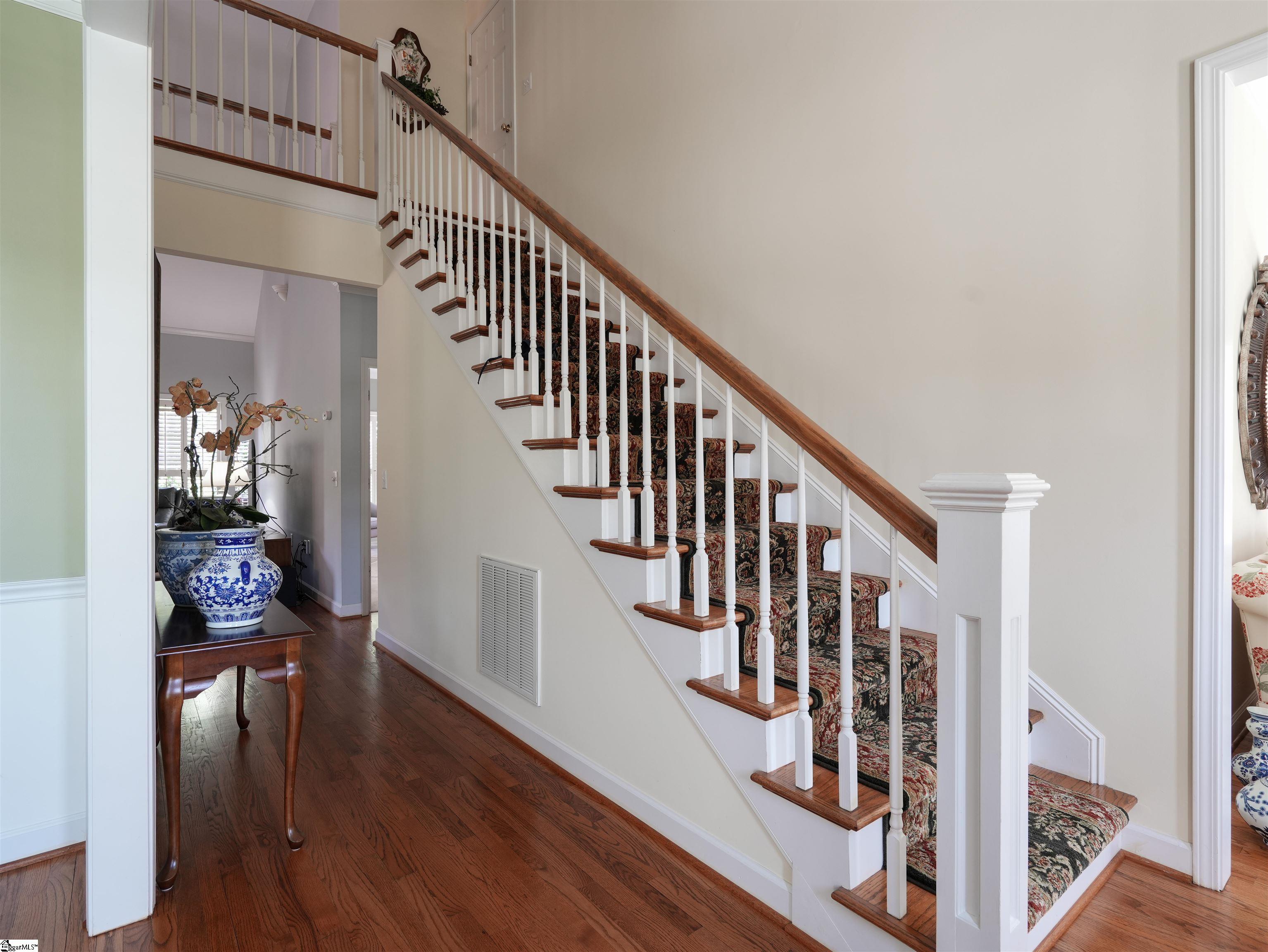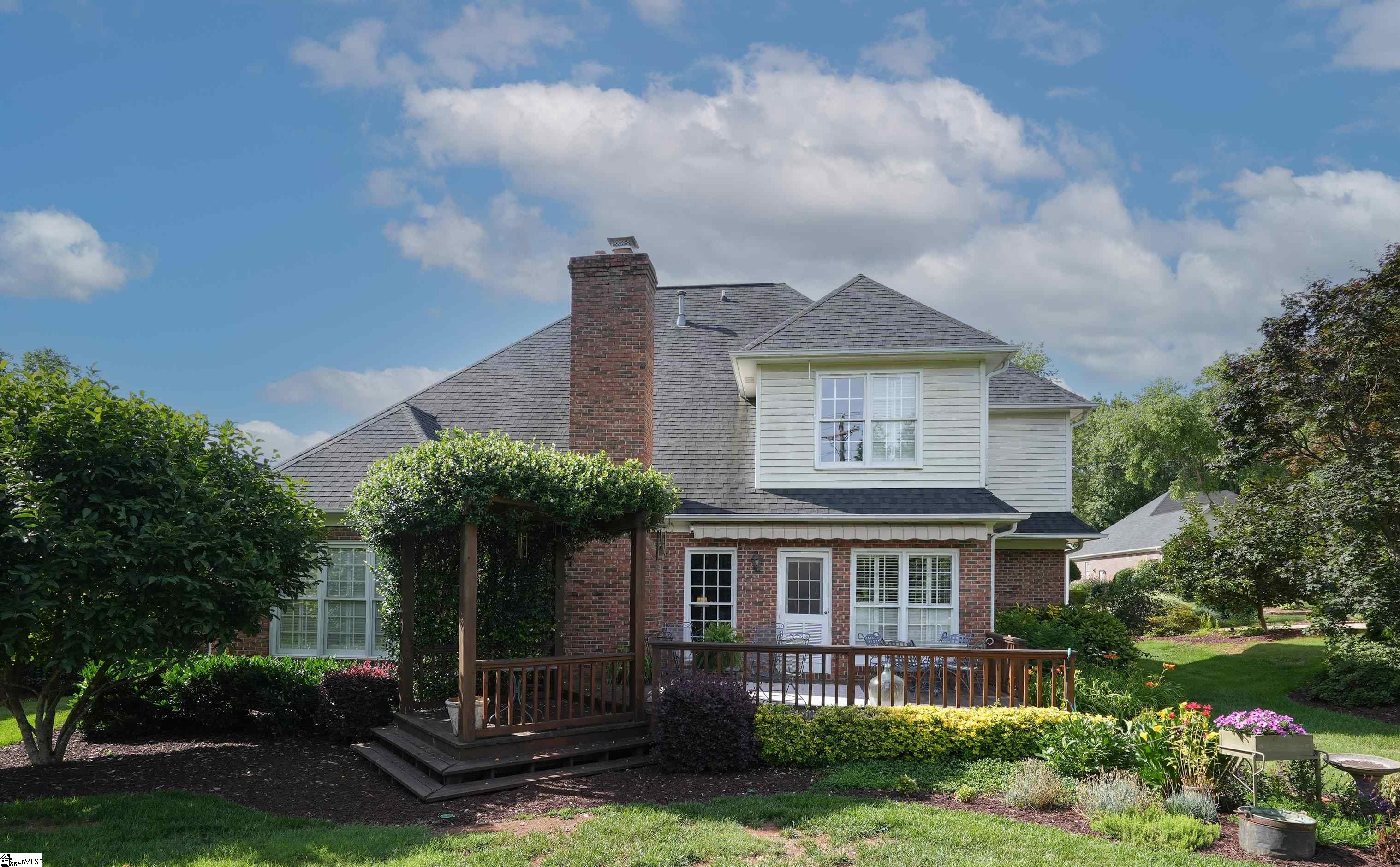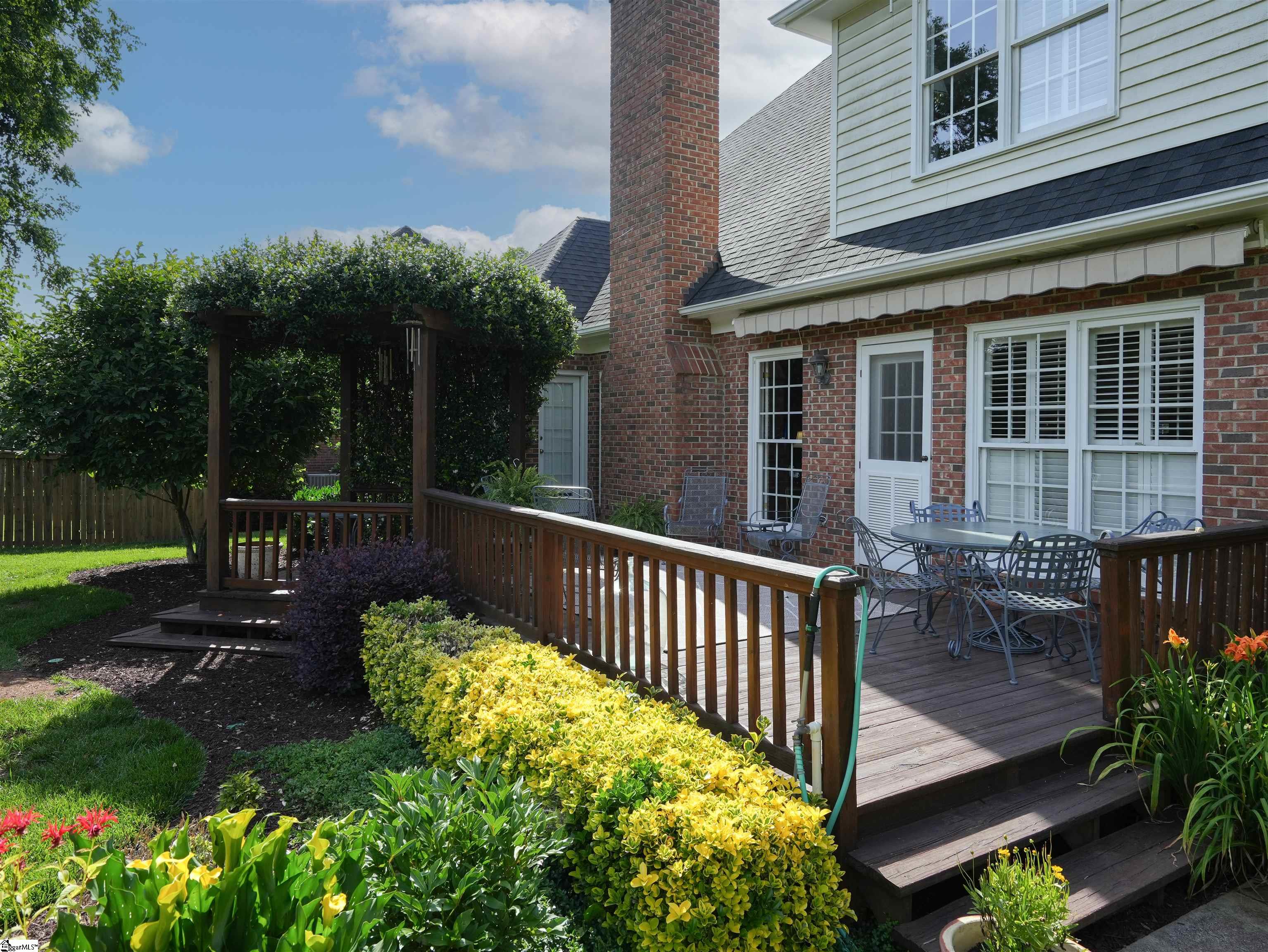 This home looks "better than new." You will be impressed as you enter the beautiful Grove Park subdivision on the Eastside. The curb appeal of the home gives you a sense of the good things awaiting inside. As you enter the home, you'll feel a sense of welcome and comfort. The foyer is light and airy with a Palladium window and glowing hardwoods. A formal sitting room (that could easily be transformed to an office) is to the right and the elegant dining room is to the left. You walk down the hallway into the great room with vaulted ceilings and a gas log fireplace. The primary bedroom and bath are on the main level. The kitchen and breakfast area are cheerful and filled with light. Windows with plantation shutters are found throughout the house. Hardwoods are abundant on the main level. The hardwood stairs leading to the second level are covered by an elegant runner. Upstairs you will discover three beautiful and spacious guest rooms. A flex area upstairs is a multi-purpose space. There is an attic space housing the furnace and providing additional storage. The big two-car garage (20X23) has storage space, as well. The landscaping on the front of the house is beautifully manicured. The decks have multiple spaces for entertaining. There is a retractable awning on the deck that provides shade, as needed. There is a fenced back yard that allows for privacy. The house is conveniently located near the Greenville Spartanburg International Airport, specialized healthcare facilities, a myriad of restaurants, and a variety of entertainment venues in Greenville and Greer and the surrounding Upstate.