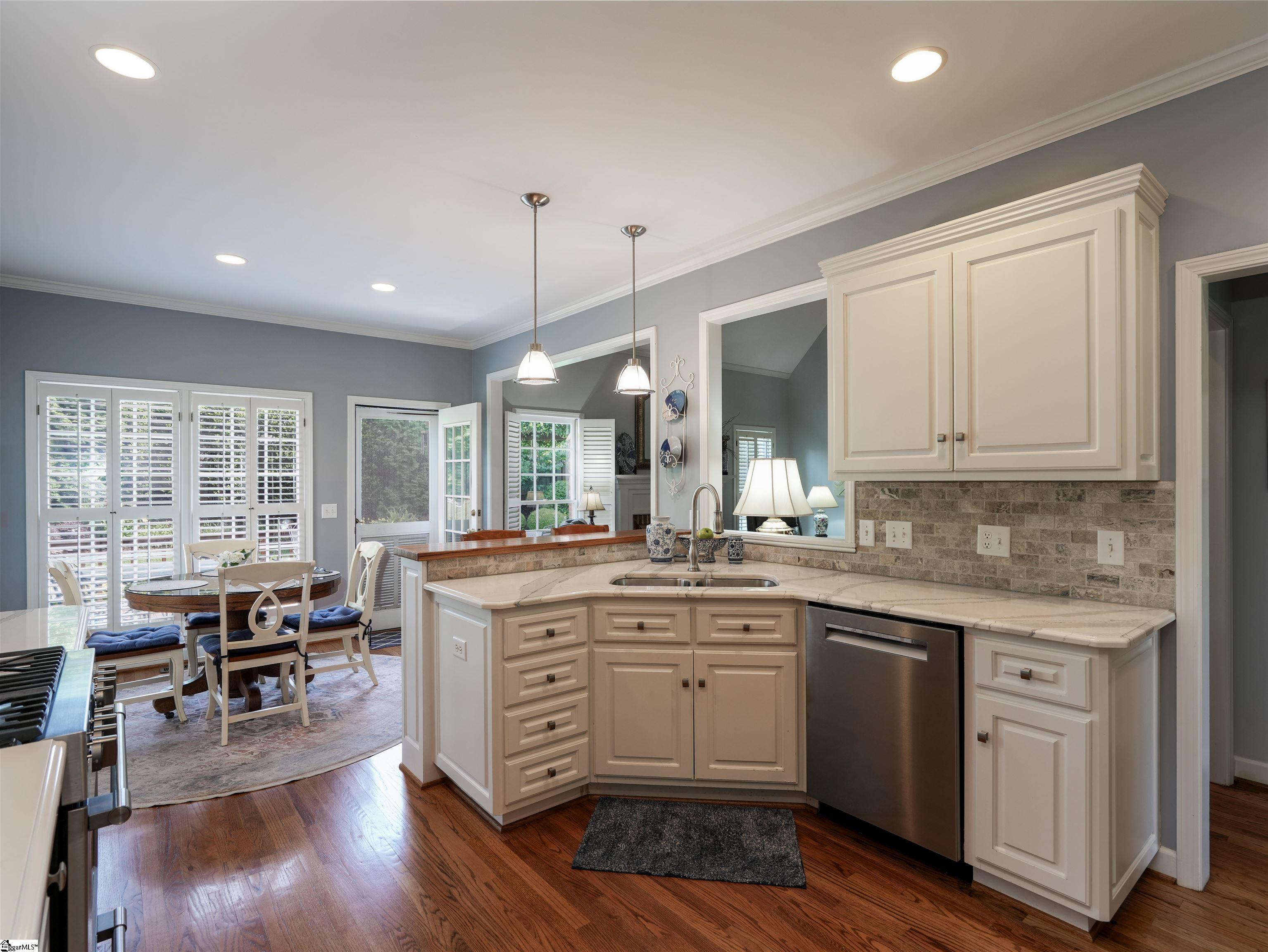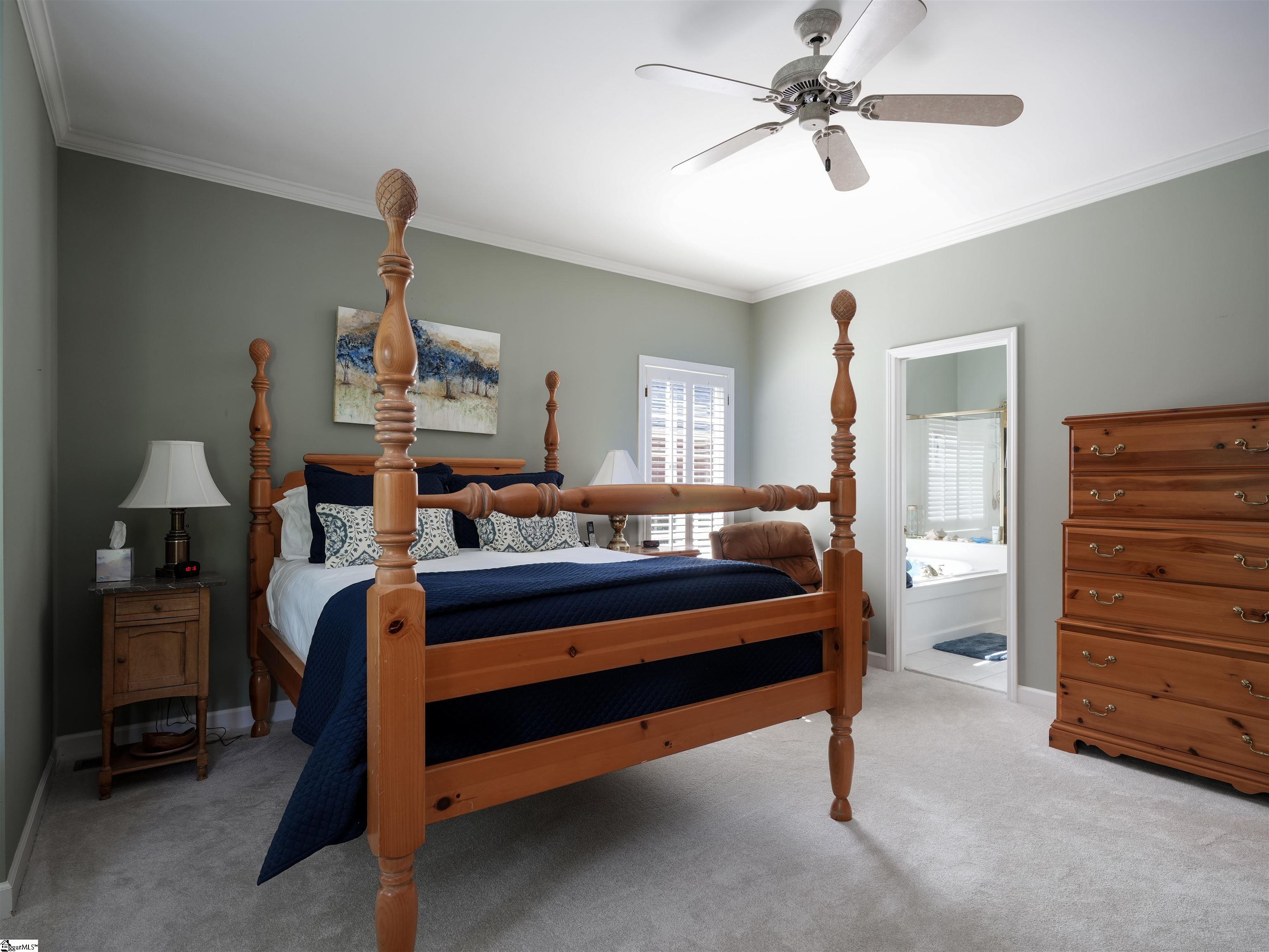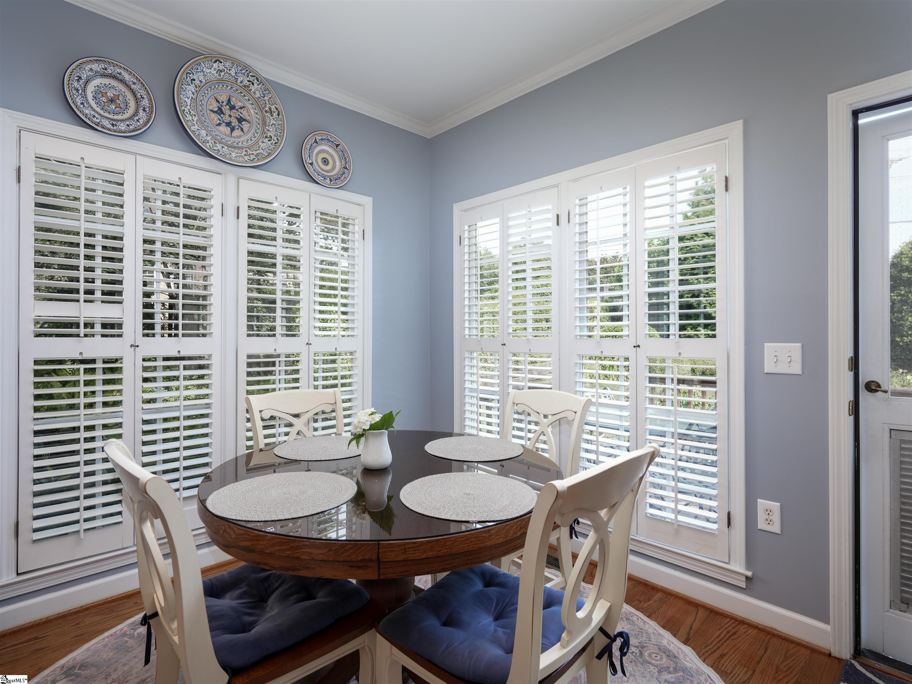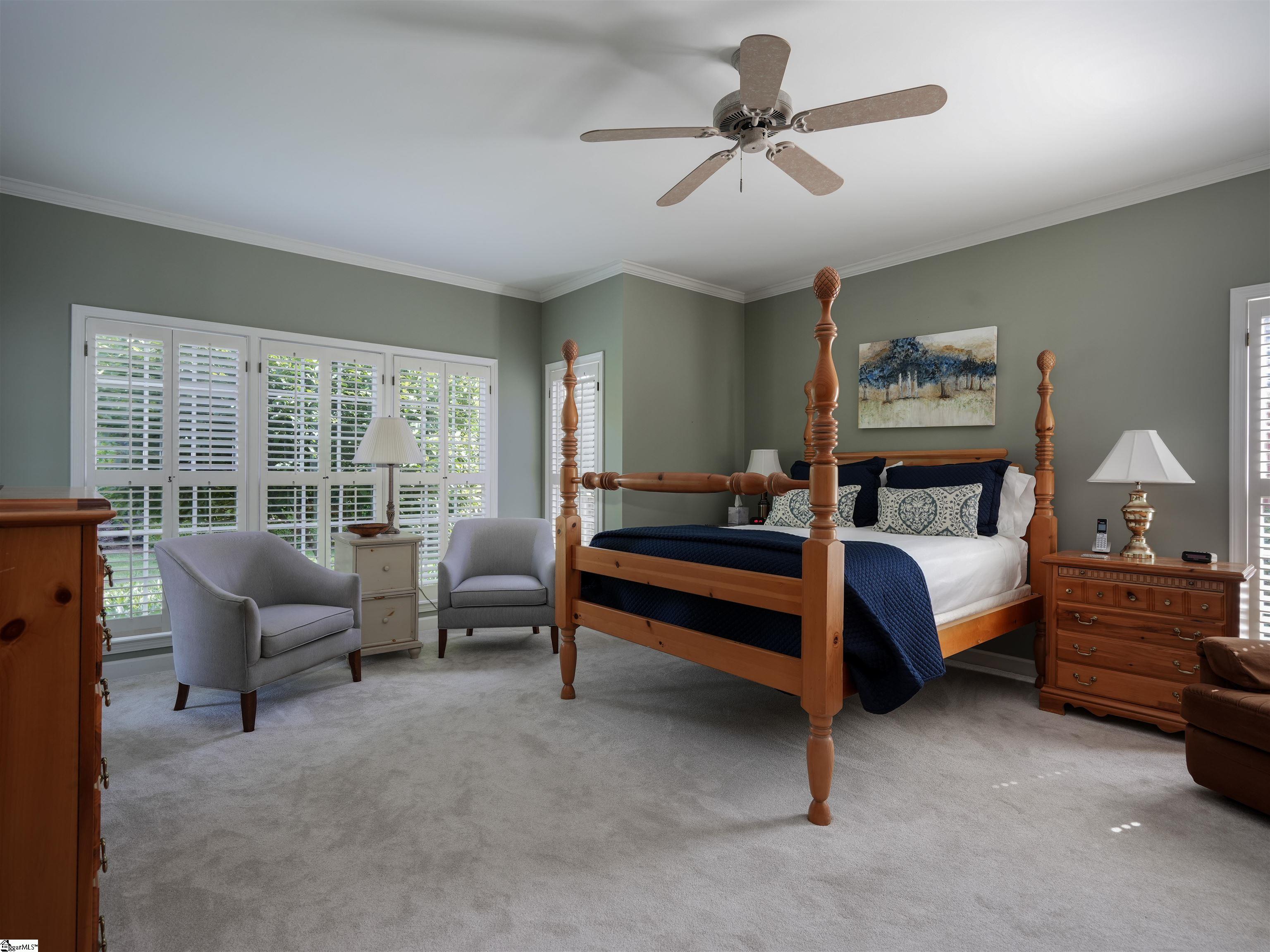This home looks "better than new." You will be impressed as you enter the beautiful Grove Park subdivision on the Eastside. The curb appeal of the home gives you a sense of the good things awaiting inside. As you enter the home, you'll feel a sense of welcome and comfort. The foyer is light and airy with a Palladium window and glowing hardwoods. A formal sitting room (that could easily be transformed to an office) is to the right and the elegant dining room is to the left. You walk down the hallway into the great room with vaulted ceilings and a gas log fireplace. The primary bedroom and bath are on the main level. The kitchen and breakfast area are cheerful and filled with light. Windows with plantation shutters are found throughout the house. Hardwoods are abundant on the main level. The hardwood stairs leading to the second level are covered by an elegant runner. Upstairs you will discover three beautiful and spacious guest rooms. A flex area upstairs is a multi-purpose space. There is an attic space housing the furnace and providing additional storage. The big two-car garage (20X23) has storage space, as well. The landscaping on the front of the house is beautifully manicured. The decks have multiple spaces for entertaining. There is a retractable awning on the deck that provides shade, as needed. There is a fenced back yard that allows for privacy. The house is conveniently located near the Greenville Spartanburg International Airport, specialized healthcare facilities, a myriad of restaurants, and a variety of entertainment venues in Greenville and Greer and the surrounding Upstate.
